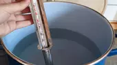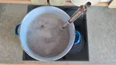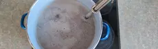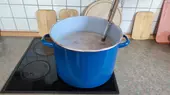 Was einfach klingt, stellt sich jedoch als schweißtreibendes Unterfangen heraus, denn die Gradzahl auf meinem Thermometer schießt immer blitzschnell in die Höhe, und der Topf muss immer wieder rasch von der Herdplatte genommen werden. Ist die Maische nämlich zu heiß, sterben die Enzyme ab und es entsteht kein verwertbarer Zucker für die Gärung.
