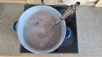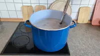 An einem Feiertag im Juni geht es schließlich ans Eingemachte. Laut Rezept, das ich im Internet gefunden habe, wird der erste Brauschritt als Einmaischen bezeichnet. In diesem Prozess wird die Stärke im Malz in vergärbaren Zucker umgewandelt, eine wichtige Grundlage für die spätere Gärung. Dafür fülle ich zuerst den Topf mit den 15 Litern Wasser und erhitze es auf 67 Grad. Als das Wasser nach einer gefühlten Ewigkeit die richtige Temperatur erreicht, gebe ich das Malz hinzu und rühre um. Eine Stunde lang muss die Malz-Wasser-Mischung, die Maische, jetzt bei etwa 67 Grad im Topf ziehen.