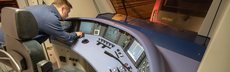 Am Display gibt Triebfahrzeugführer Volker Kunze die Uhrzeit ein, wann es morgen Früh für diesen Zug wieder losgeht: 5.56 Uhr beginnt ein neuer Tag auf den Schienen.