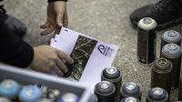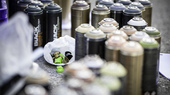 „Die Farben können wir nicht mischen, wie bei Acrylfarben zum Beispiel. Wenn wir eine ganz bestimmte Farbe brauchen – wenn auch nur für einen winzigen Punkt –, muss eine ganze Dose gekauft werden“, sagt Idler.