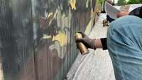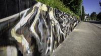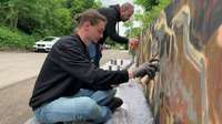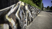 Auch für das aktuelle Projekt im Größenweg wurde ein realistisches Naturmotiv gewählt. Auch die lange Gartenmauer wurde in der Vergangenheit von Unbekannten mit unschönen Schriftzügen verunziert. Diese sollen nun verdeckt werden. Diese sollen nun verdeckt werden. „Eine schöne Bemalung ist oft auch vorbeugend. Das wird normalerweise respektiert und keiner malt einfach drüber. Und außerdem lädt es weniger zu Schmierereien ein als eine ganz leere Fläche“, sagt Blum.
