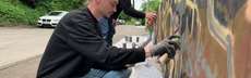 Kunst aus der SprühdoseZwei Backnanger haben sich als professionelle Objektgestalter selbstständig gemacht. Mit Farbe aus der Sprühdose verwandeln sie graue Betonwände und beschmierte Stromkästen in farbige Comics oder in fotorealistische Bilder.